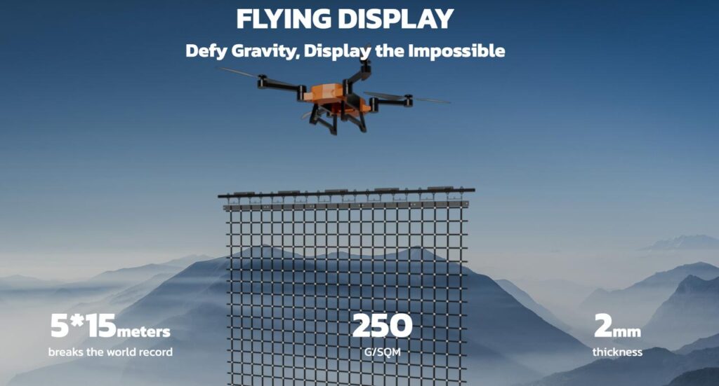 El Flying Display de VISTARA es una pantalla innovadora diseñada para presentaciones a baja altitud y medios aéreos. Adopta tecnología de pantalla LED ultraligera, delgada y transparente, con un peso de 250 g/m² y 2 mm de grosor, más del 95% de transparencia, lo que permite que el contenido proyectado se fusione perfectamente con el entorno y presente un efecto visual realista y deslumbrante.